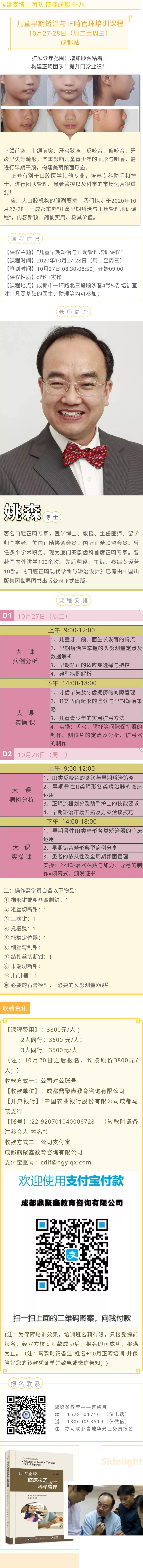 【口腔正畸】10月27-28日《兒童早期矯治與正畸管理培訓課程》成都站